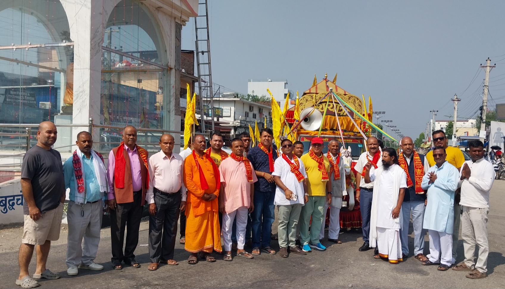 परासी आइपुगेको रथयात्रालाई प्रदेशसभा सदस्य बैजनाथ जयसवाल,गजेन्द्रमोक्ष दिव्य धाम विकास समितिका संस्थापक सदस्य वीरेन्द्र अग्रहरी, रामग्राम नगरपालिकाका पूर्व मेयर नरेन्द्र गुप्ता,नेपाल उद्योग वाणिज्य महासंघका केन्द्रीय सदस्य केशव भण्डारी,लुम्बिनी प्रदेशका निवर्तमान अध्यक्ष गुणनिधि तिवारी, नवलपरासी उद्योग वाणिज्य संघका अध्यक्ष ओमप्रकाश अग्रहरी, वरिष्ठ उपाध्यक्ष नगेन्द्र अग्रहरी,लक्ष्मीनारायण मन्दिर व्यवस्थापन समितिका उपाध्यक्ष अमरचन्द अग्रवालसहित सदस्यहरु,नेपाल रेडक्रस सोसाइटीका जिल्ला सभापति राजेन्द्र अग्रहरी, नेपाल लेखापढी कानून व्यवसायी एसोसिएसनका केन्द्रीय उपाध्यक्ष अर्जुन क्षेत्री, रामग्राम जेसीजका अध्यक्ष विष्णुराज राव,नागरिक समाजका सचिव अनिल अग्रहरी,परासी खानेपानी तथा सरसफाइ संस्थाका अध्यक्ष दिनेश उपाध्याय, रेडक्रस परासी उपशाखाका सभापति सन्दिप अग्रहरी, मदन भण्डारी फाउण्डेसनका अध्यक्ष श्याम बस्याल लगायत धार्मिक तथा सामाजिक व्यक्तित्वहरुले स्वागत गर्नुभएको लक्ष्मीनारायण मन्दिरका पुजारी गिरीराज पाण्डेयले जानकारी दिनुभयो ।