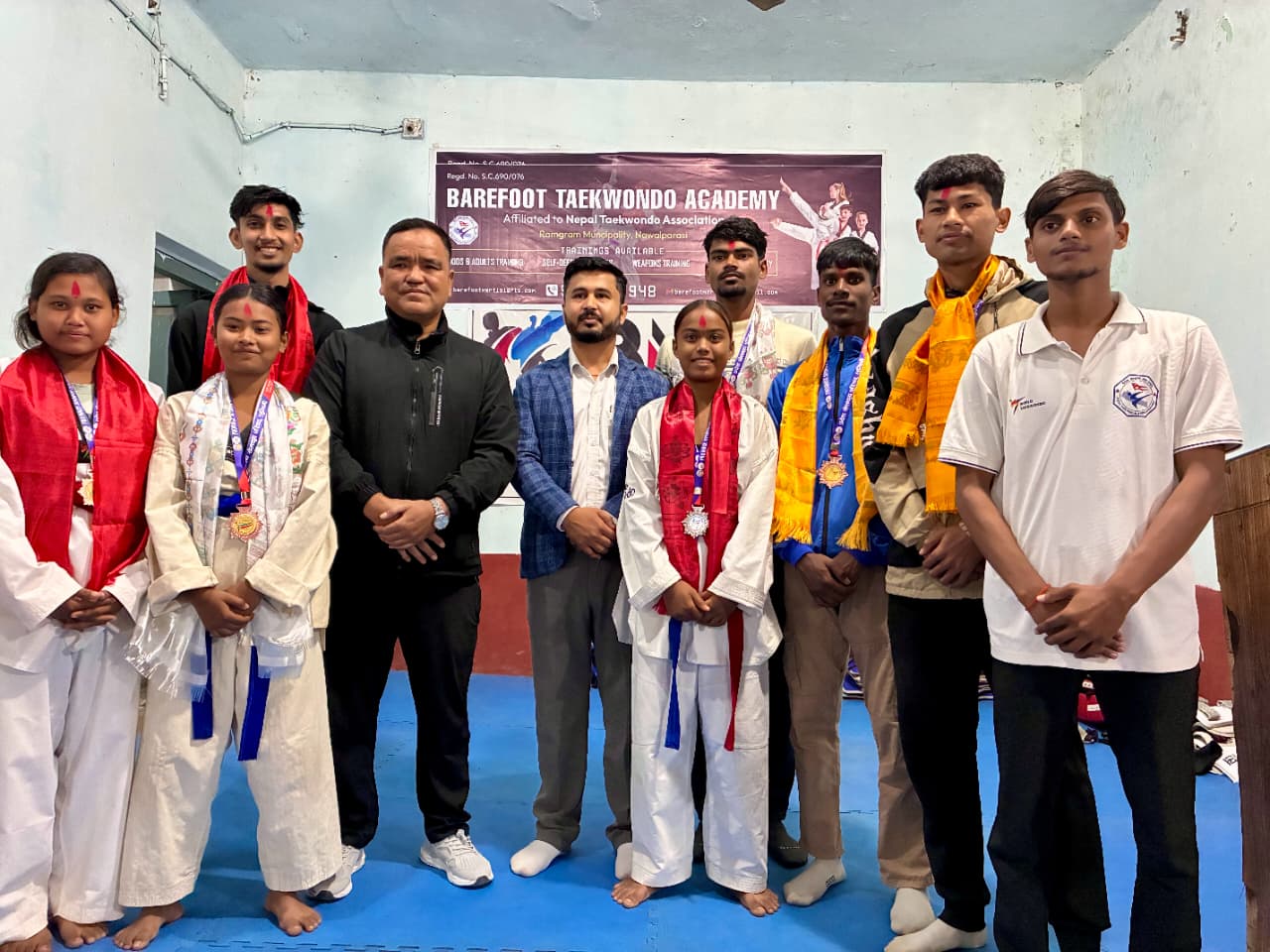 प्रतियोगितामा जिल्लाको पहिचानलाई उकास्ने गरि शानदार प्रदर्शन गर्ने खेलाडीहरूलाई बरेफुट तेक्वान्दो एकेडेमी परासीले विशेष कार्यक्रममार्फत सम्मान गरेको हो। कार्यक्रममा एकेडेमीका प्रमुख मनिष गुप्ताले खेलाडीहरूले अनुशासन, लगनशीलता र प्रतिभाका आधारमा जिल्लाको शान बढाएको भन्दै प्रशंसा गर्नुभयो । ‘‘यस्तो अनुशासन र मेहनतले खेलाडीहरूलाई अझ उज्ज्वल भविष्यतर्फ डो¥याउँछ,’’ गु्प्ताले भन्नुभयो ।