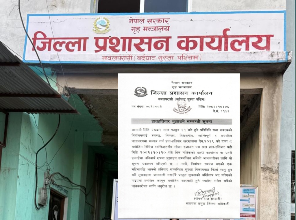 प्रतिनिधिसभा निर्वाचनलाई लक्षित गर्दै हातहतियार बुझाउन नवलपरासी प्रशासनको निर्देशन